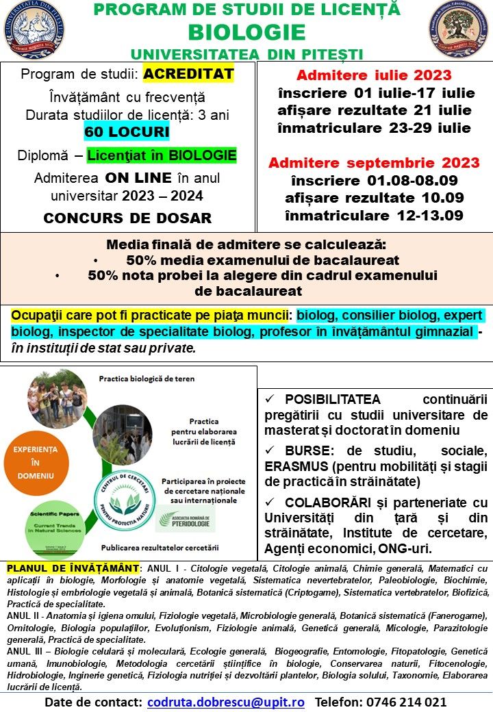 - Rezultate finale înmatriculați: 12.09.2025, ora 15.00. ==>> LISTA CANDIDAȚILOR ADMIȘI și ÎNMATRICULAȚI