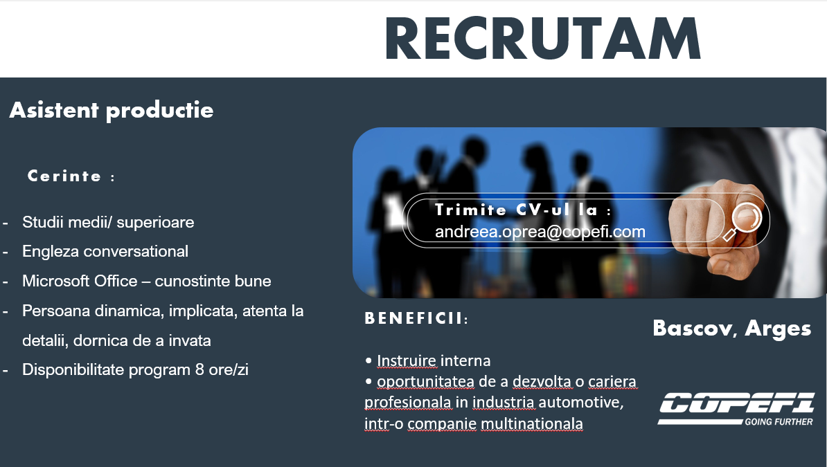 Please send your CV to the email andreea.oprea@copefi.com ” . Informatii aici.