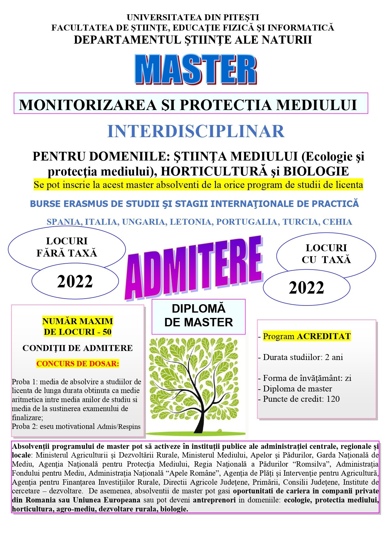 ADMITERE ON-LINE 2022 - Pliant admitere MONITORIZAREA ȘI PROTECȚIA MEDIULUI