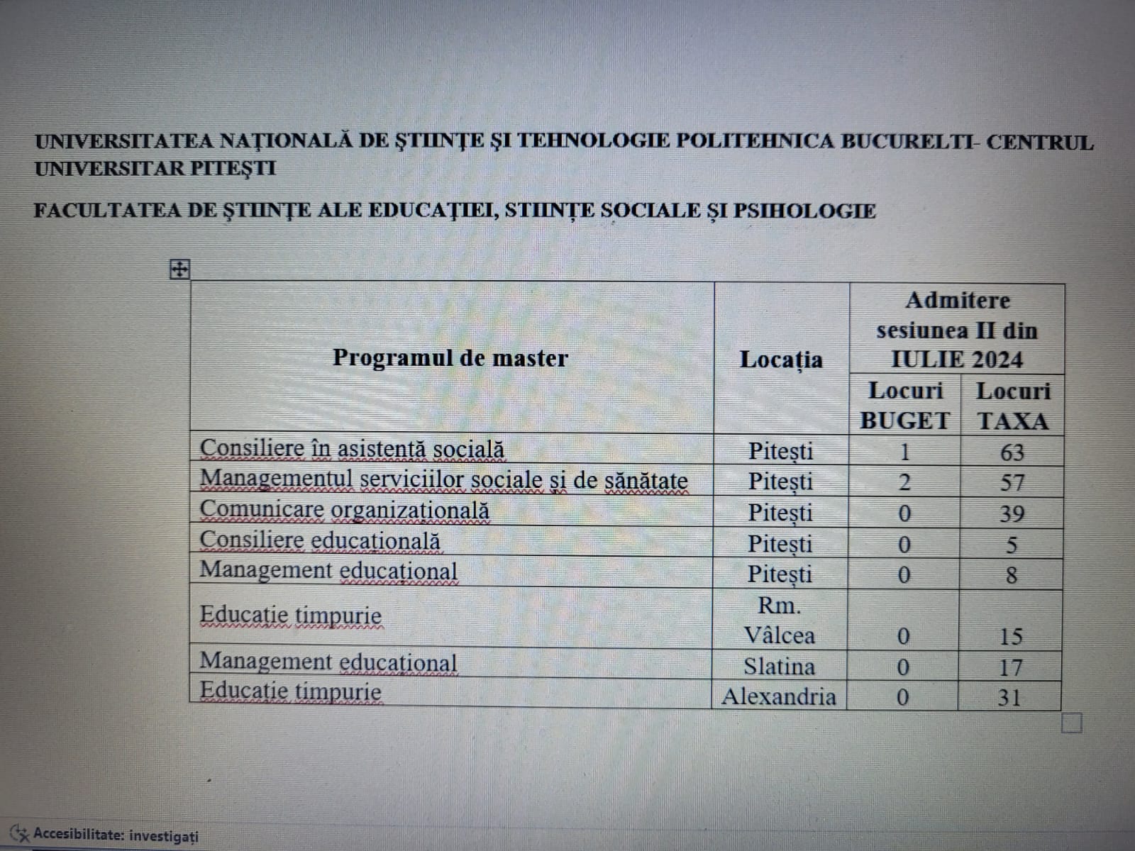 REZULTATELE CONCURSULUI DE ADMITERE IULIE 2024 - MANAGEMENT EDUCAȚIONAL (SLATINA)